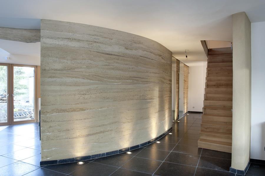 Leem geeft een warme, natuurlijke uitstraling en biedt volop creatieve mogelijkheden. Het is flexibel bewerkbaar: ronde hoeken, ingebouwde nissen of lampen zijn geen probleem. En kleine beschadigingen? Die herstel je eenvoudig met verse leem, zonder hele wanden opnieuw te hoeven stampen of stucen.